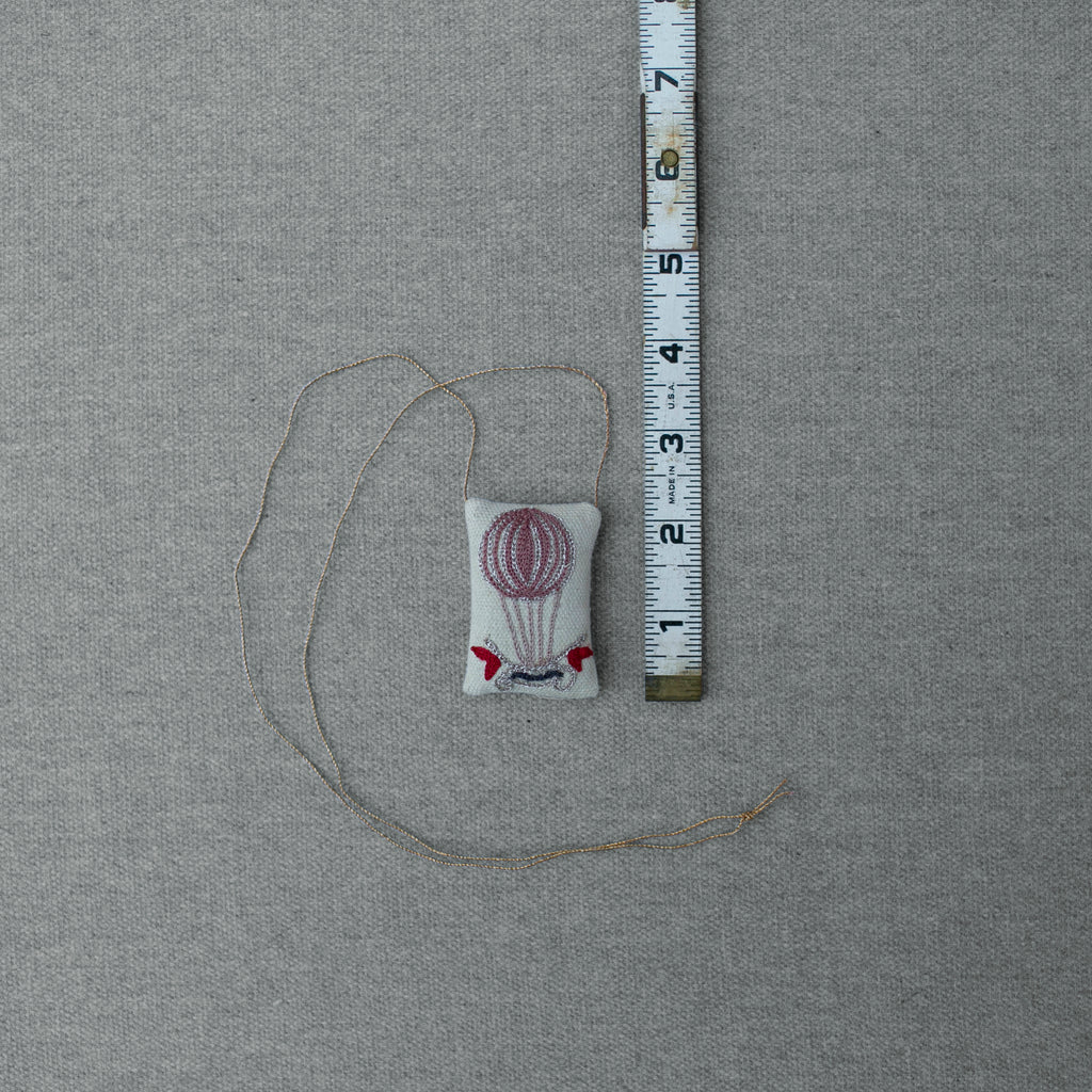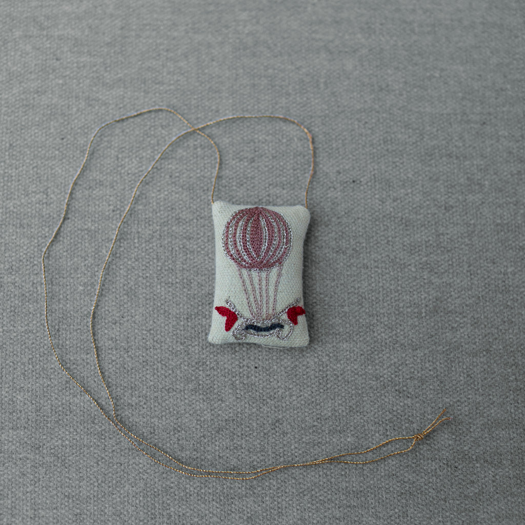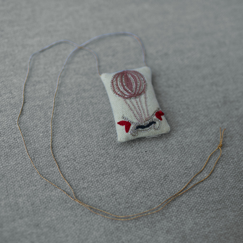 Each tiny balloon is lovingly embroidered on soft natural canvas and hand-stuffed with soothing French lavender. Lightweight and charming, this necklace is both a wearable piece of textile art and a subtle sensory delight—perfect for dreamers, collectors, or anyone seeking a touch of imaginative escape.