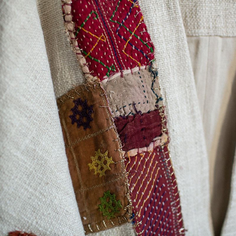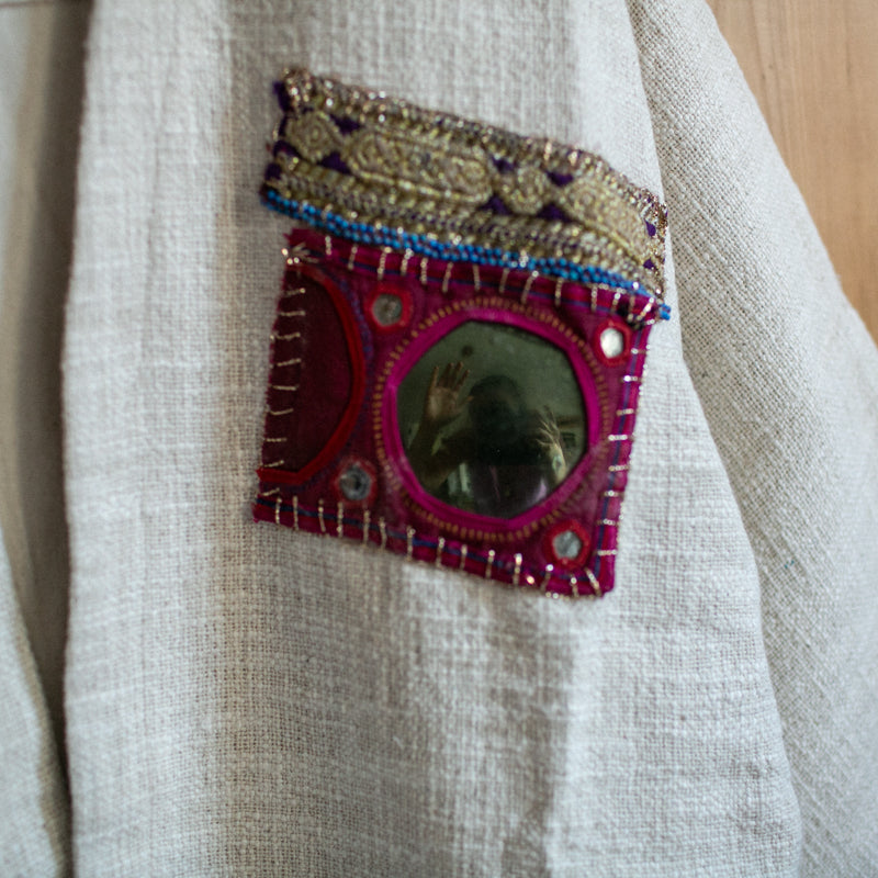 Embellished with hand selected, assorted and sewn vintage textiles from our visit to the Jaipur markets.