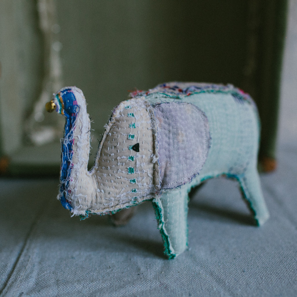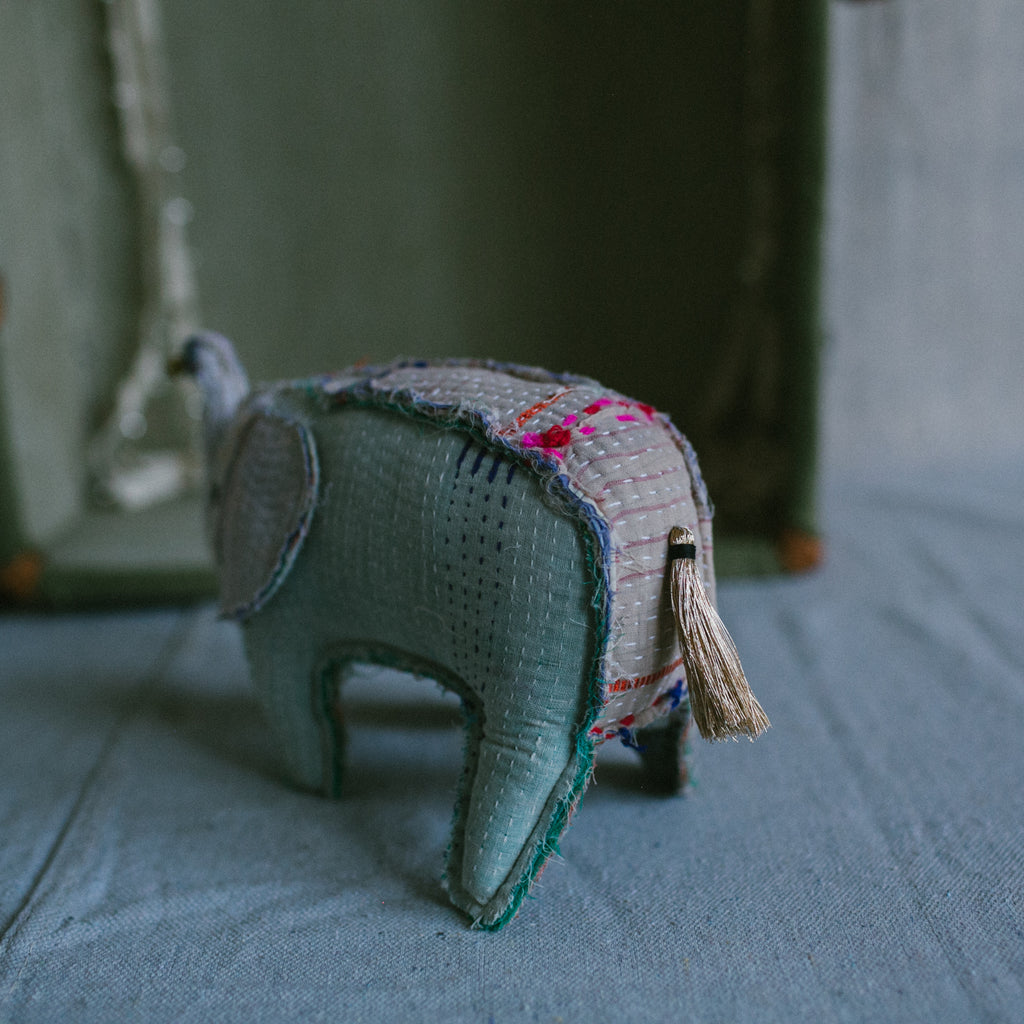Each doll is handmade and one of a kind. Made from recycled Kantha remnants left over from our pants + jackets.