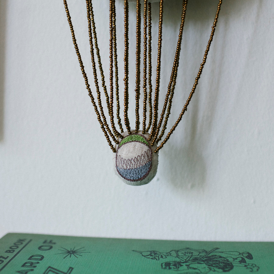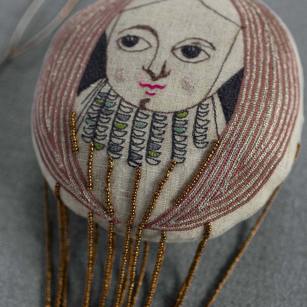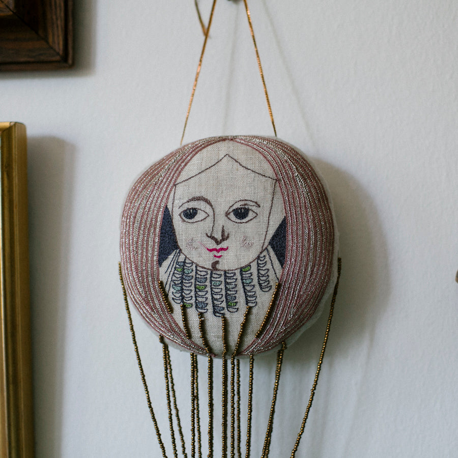 This enchanting textile wallhanging floats between fantasy and nostalgia. Created from an original illustration, its details are brought to life through a delicate blend of machine embroidery and intricate beadwork. An enchanting statement piece that celebrates storytelling and artistry.