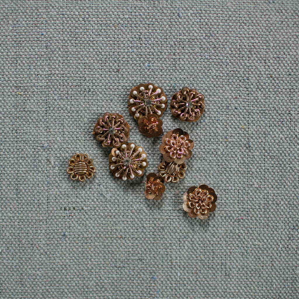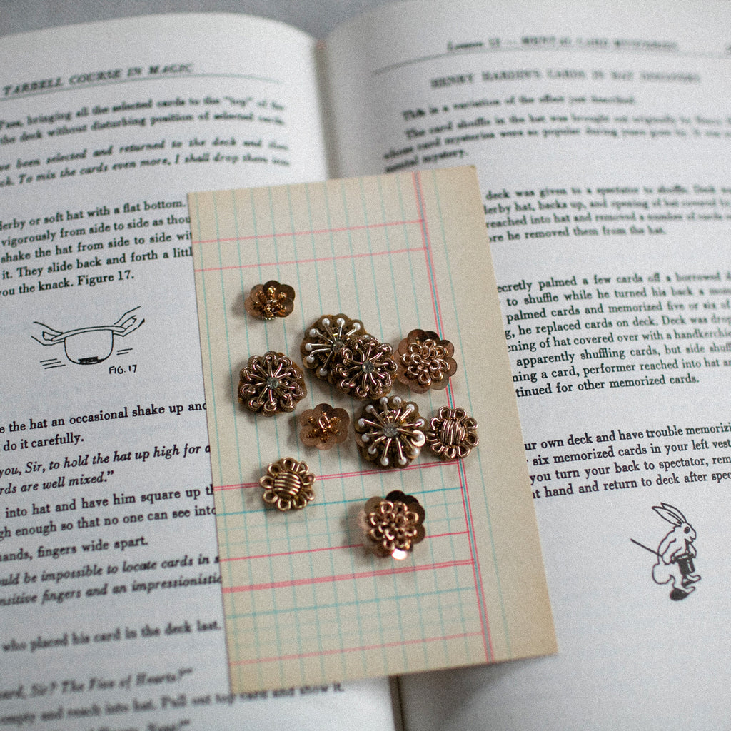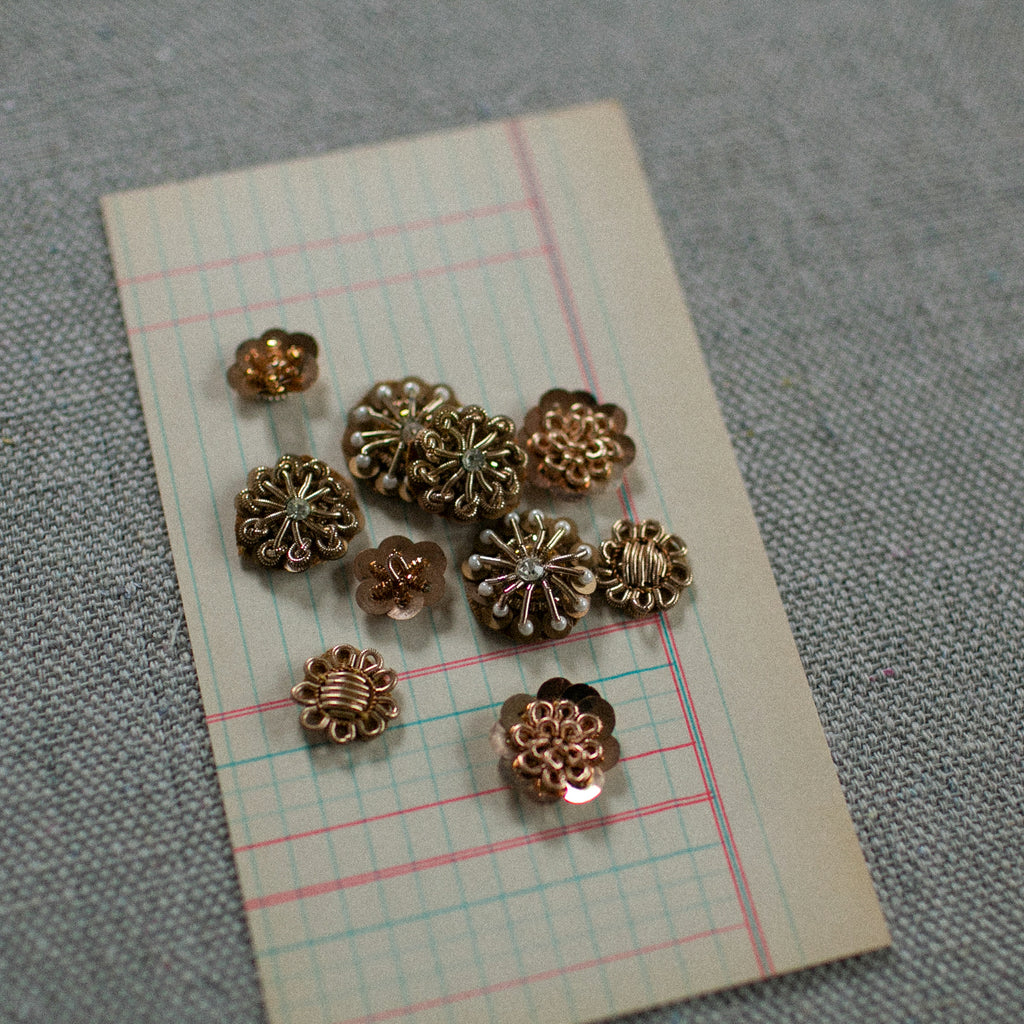 A sweet assortment of 10 vintage inspired star embellishments. Each one carefully handmade using sequins and bullion. Stiff backside perfect for crafting or gift embellishing. Can be hand sewn or adhered to most surfaces. Or sprinkled anywhere that suits!