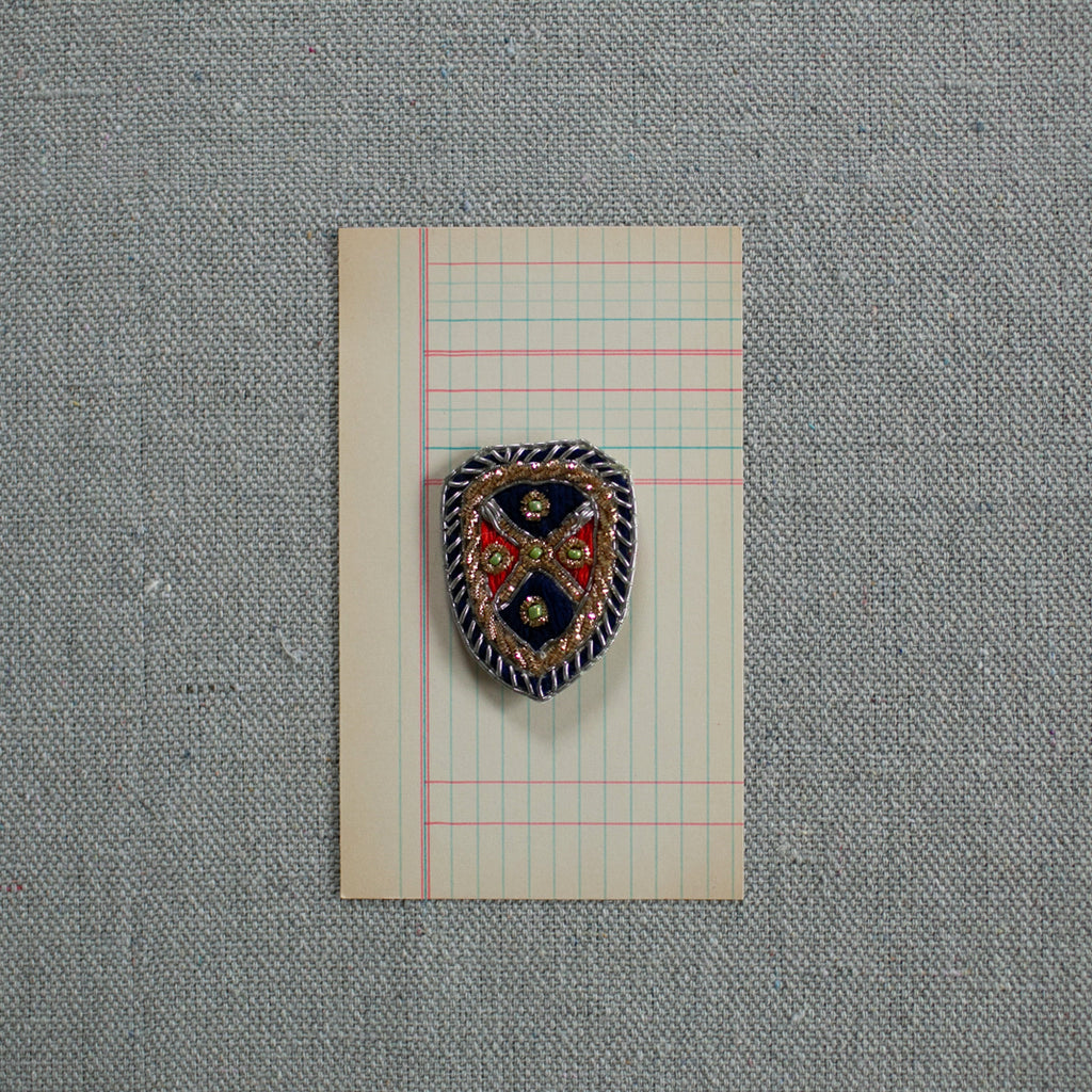 A beautiful, vintage inspired crest, Each one carefully handmade using bullion, beads and yarn. Stiff backside perfect for crafting or gift embellishing. Can be hand sewn or adhered to most surfaces. Or sprinkled anywhere that suits!