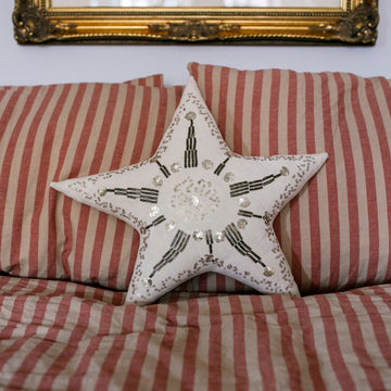 This enchanting textile wallhanging floats between fantasy and nostalgia. Created from an original illustration, its details are brought to life through a delicate blend of machine embroidery and intricate beadwork. An enchanting statement piece that celebrates storytelling and artistry.