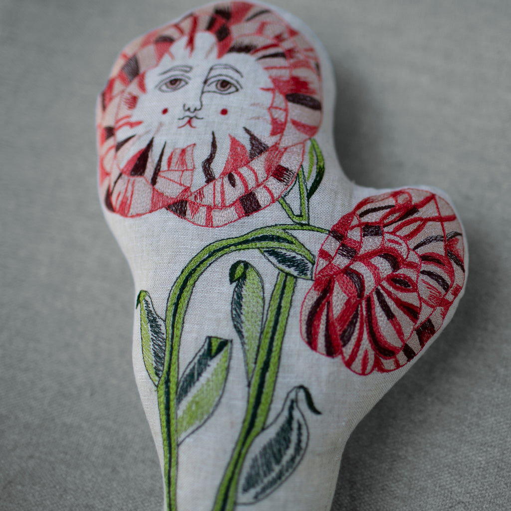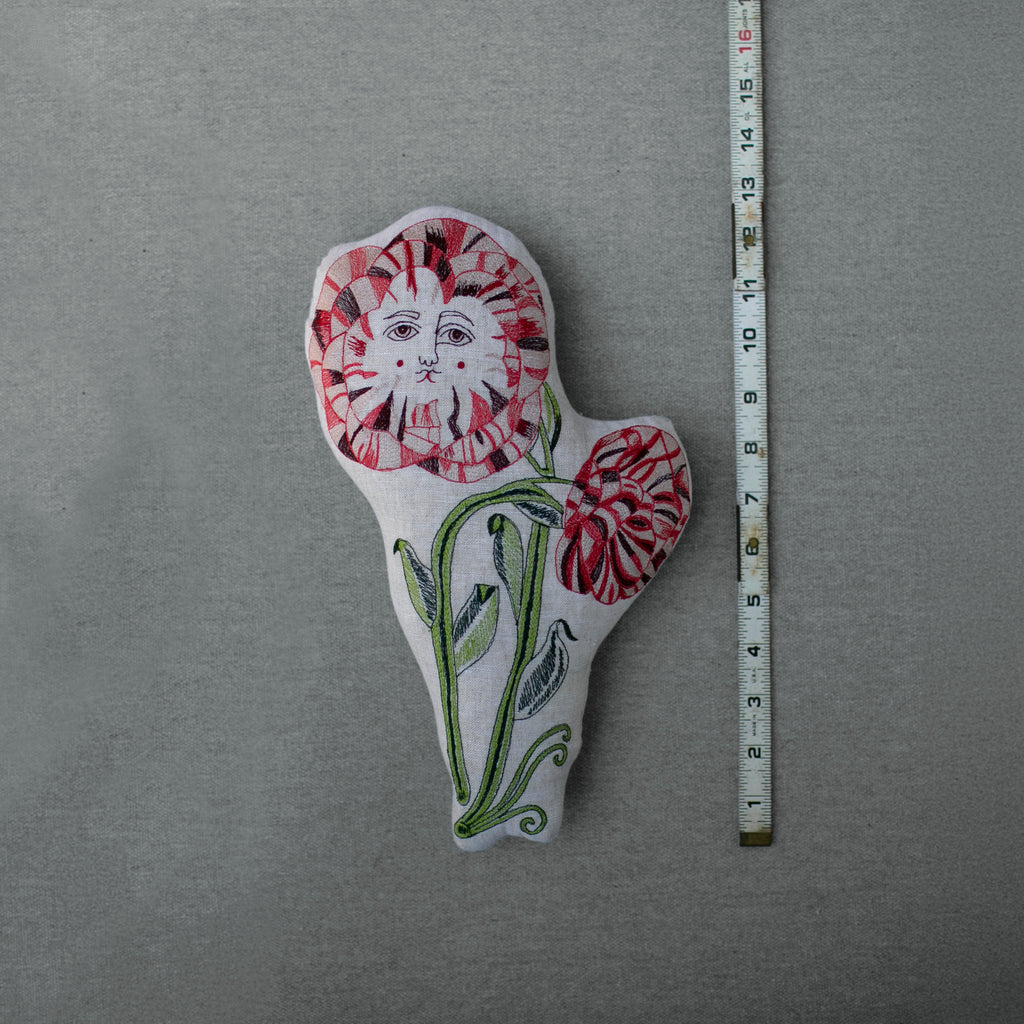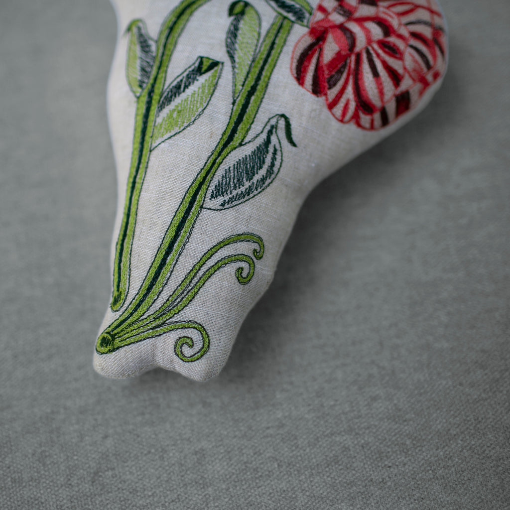 Crafted from natural linen and machine embroidered with vibrant threads, stuffed with organic cotton for a sturdy feel, every pillow is handmade, making each one a unique keepsake of color, texture, and storytelling.