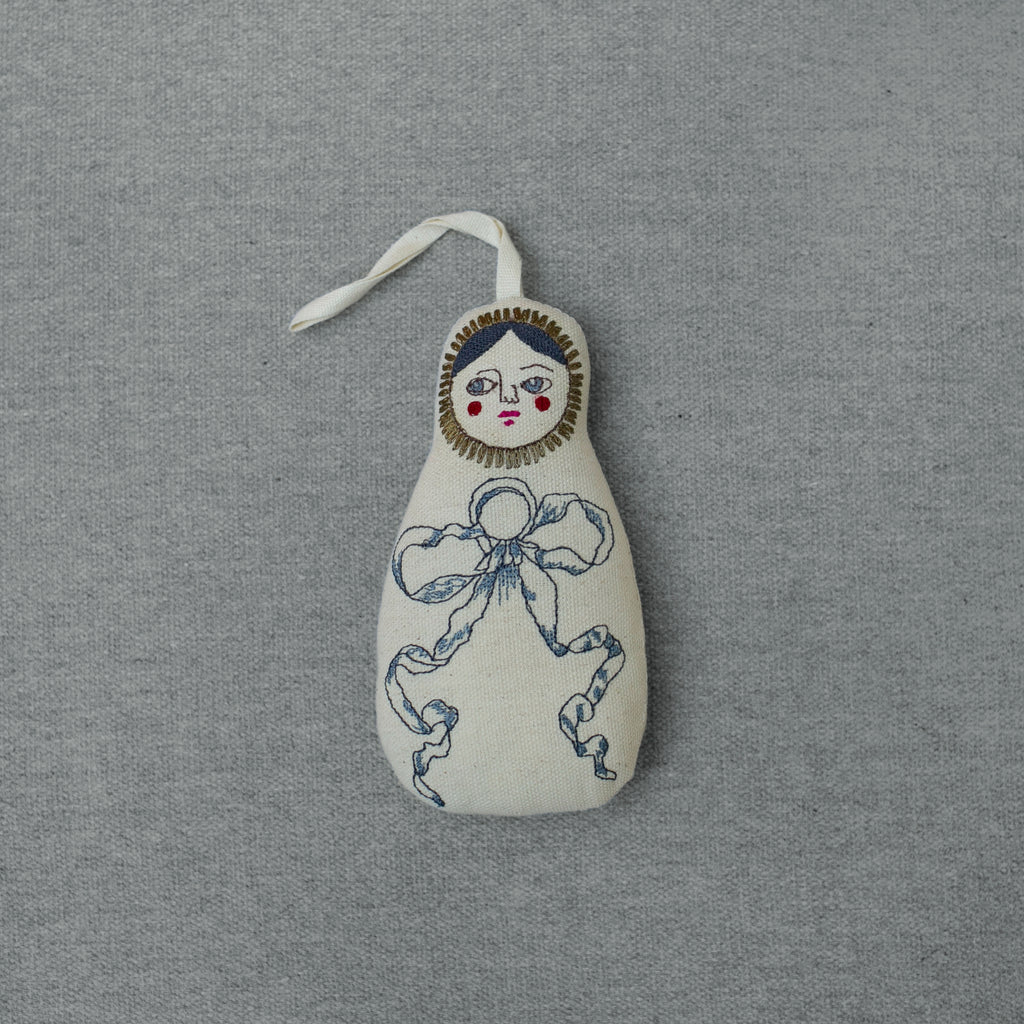 Each unique character penned from Emma’s own imagination is handcrafted using a combination of embroidery and beadwork techniques on assorted linens.