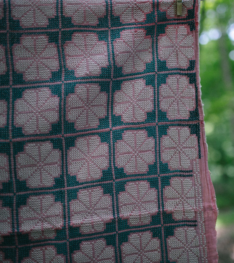 These quilts are renowned for their vibrant colors, geometric cross stitch designs, and precise craftsmanship. These can often be found in vibrant colors, but these faded ones were calling to me.