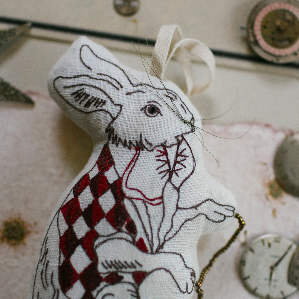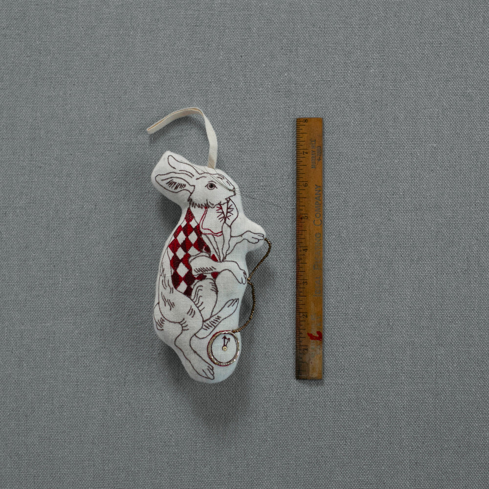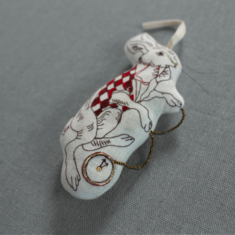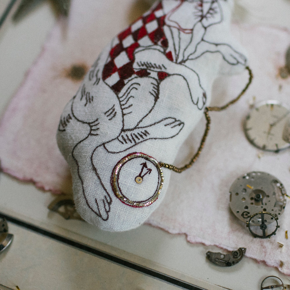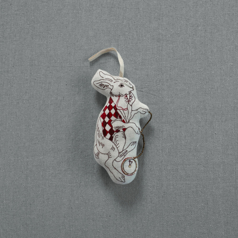 This series of textile works draws loose inspiration from Lewis Carroll's *Alice in Wonderland*. By reconnecting with these beloved childhood characters and symbols, I have delved into my own experiences of grief, heartbreak, and navigating the complexities of mental and invisible illness. The topsy-turvy confusion and absurdity of these themes are woven into whimsical metaphors in my textile art, aiming to surprise and enchant viewers. I hope you enjoy. ![]()