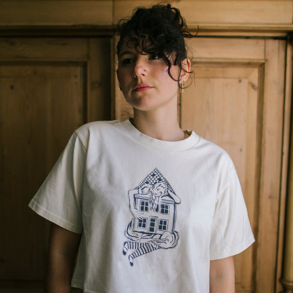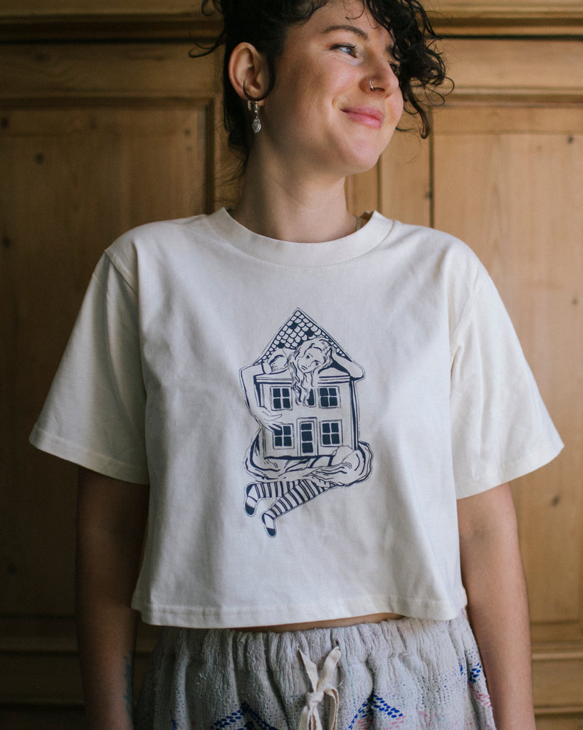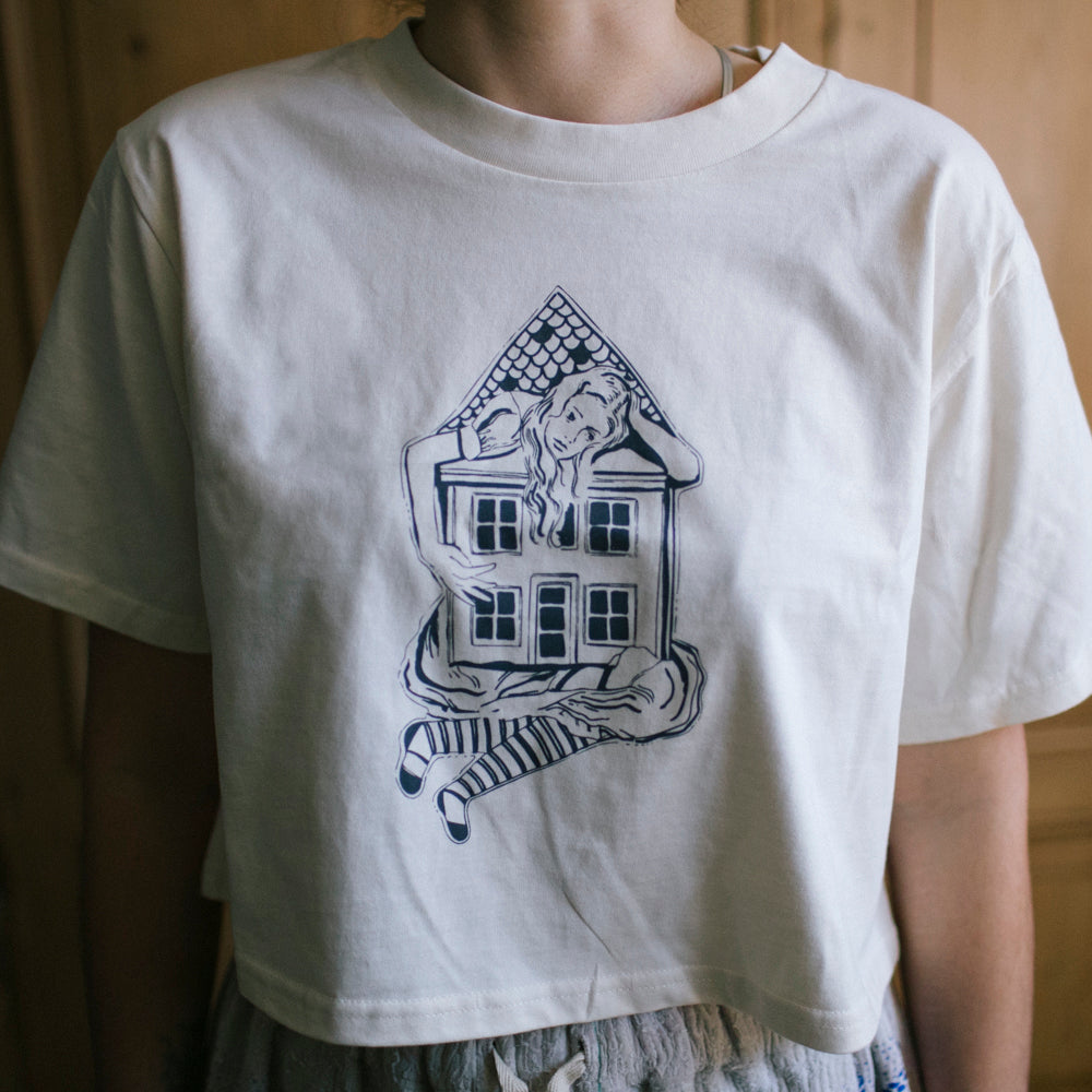 A new wearable piece of our Reimagining Wonderland collection, this oversized mid-cropped tee features our Doll House Girl illustration—a delicate figure, designed to evoke the uneasy sensations of mental and invisible illness.