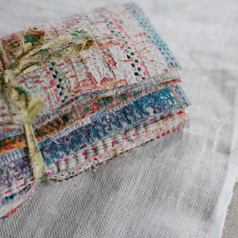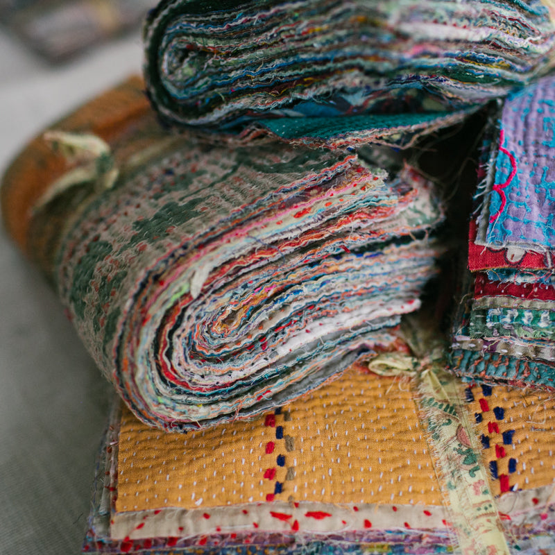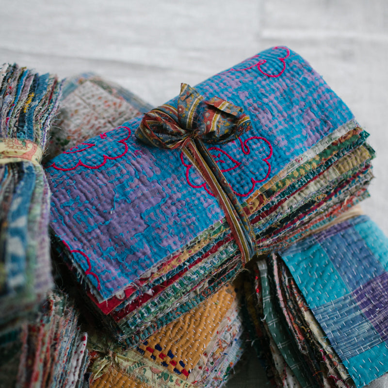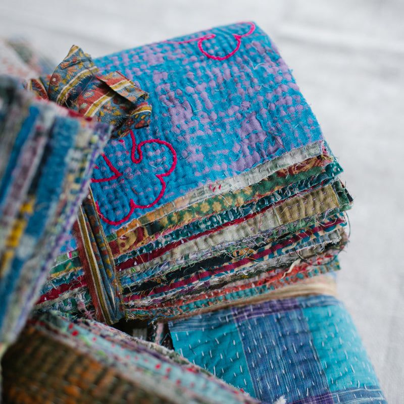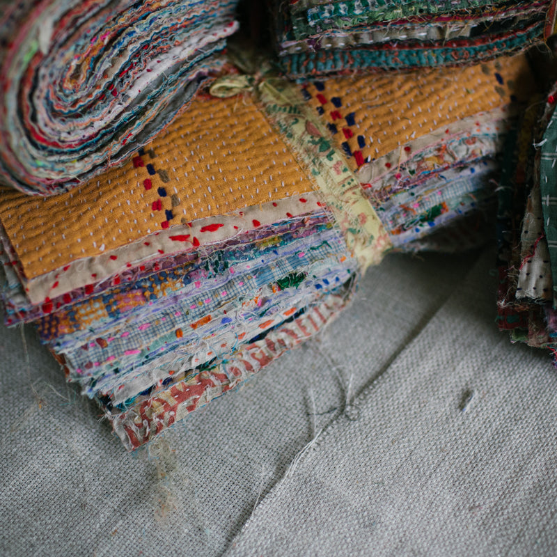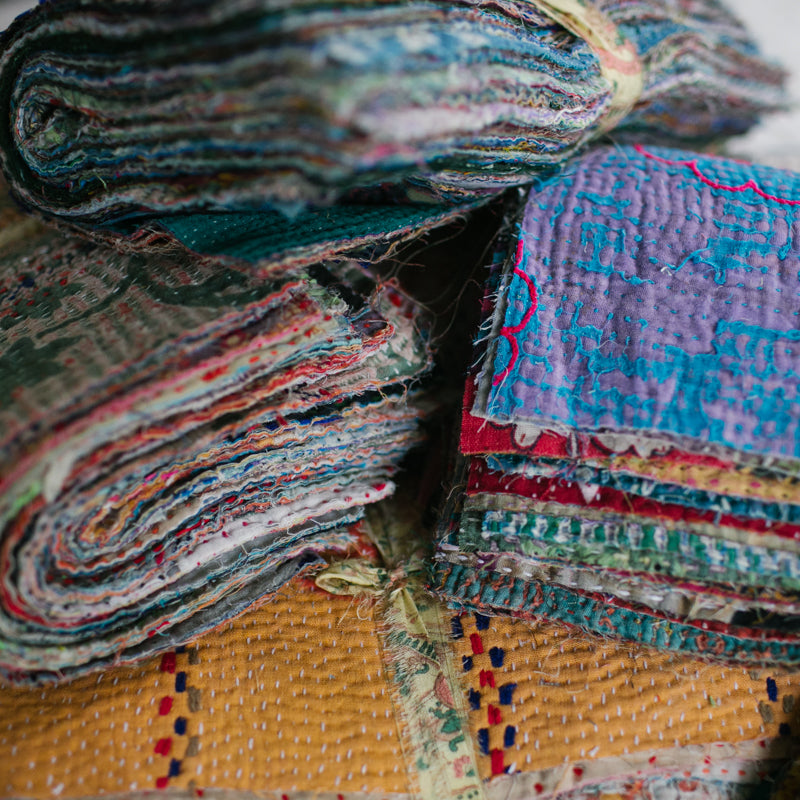 A beautiful bundle of recycled Kantha quilt remnants.