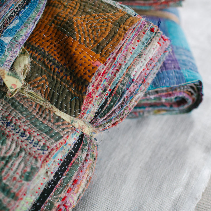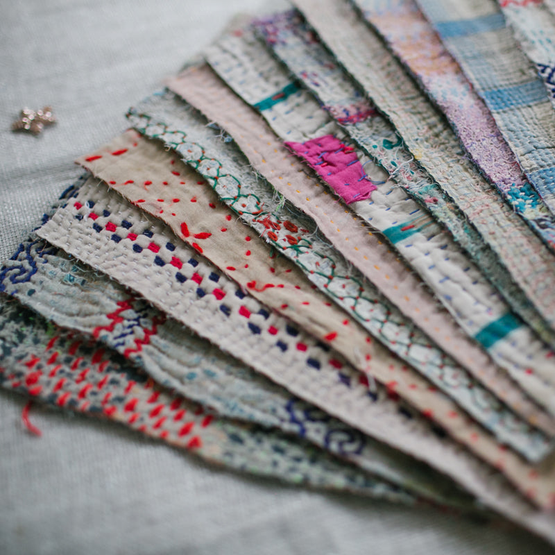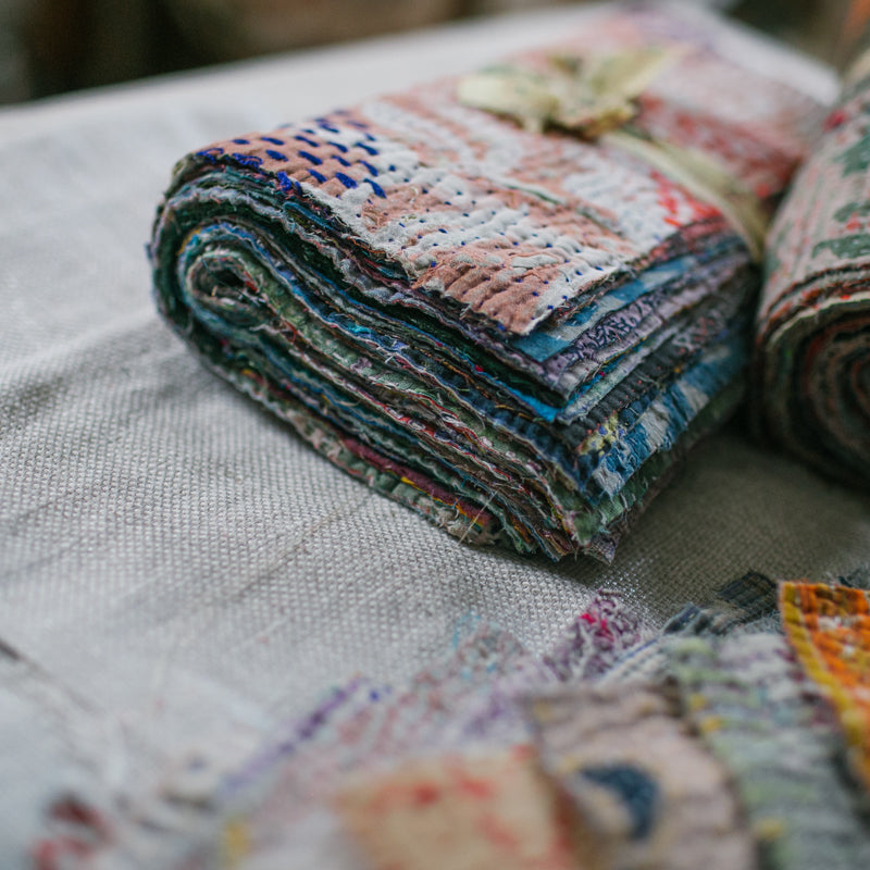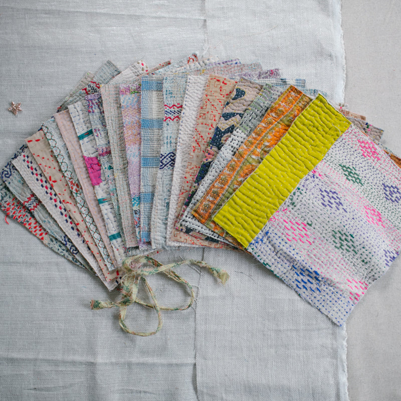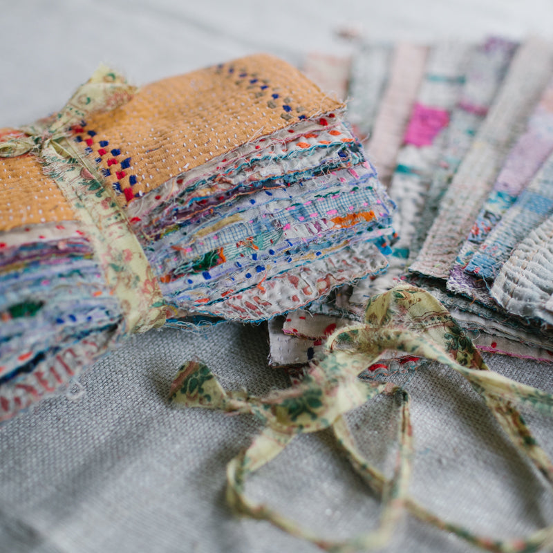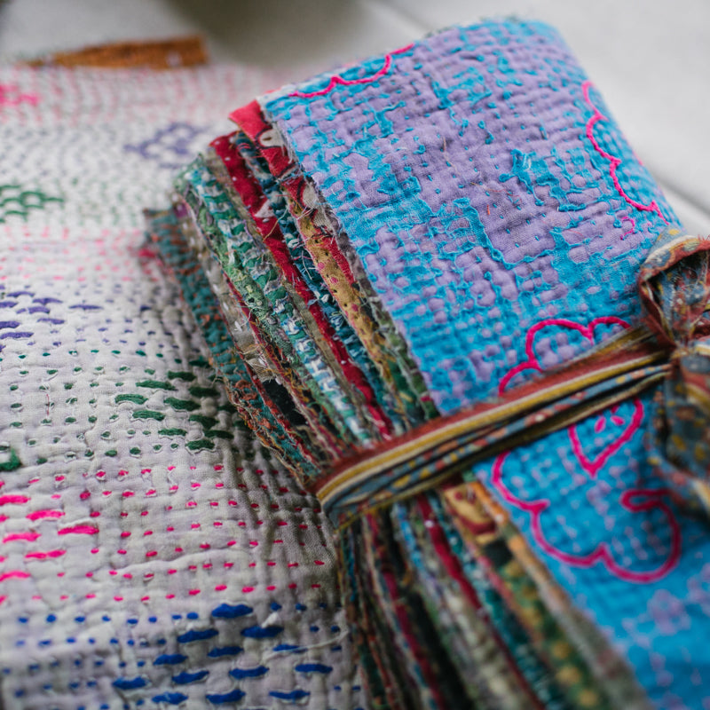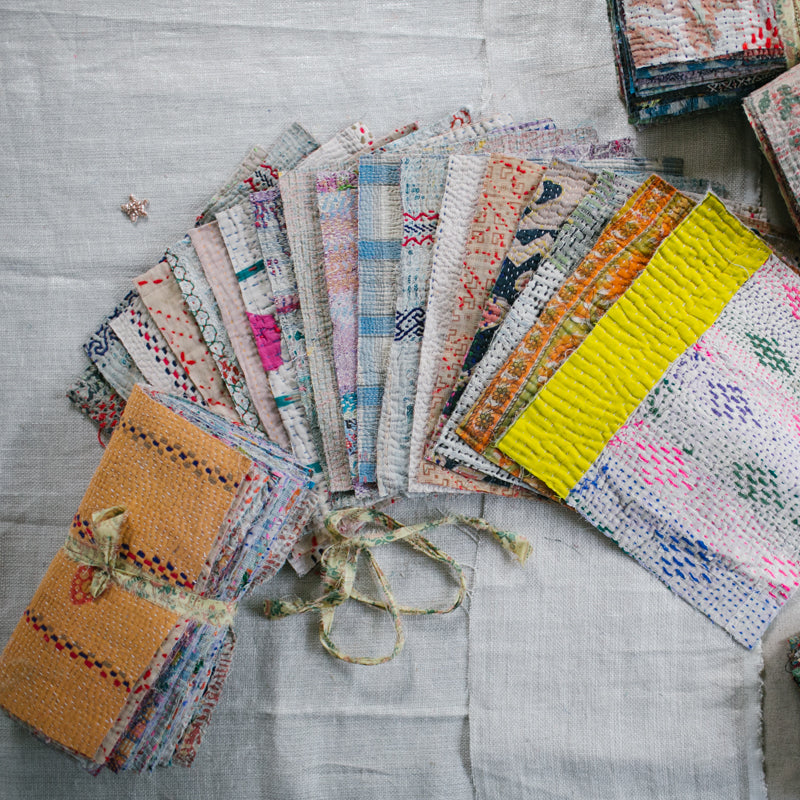 A beautiful bundle of recycled Kantha quilt remnants.