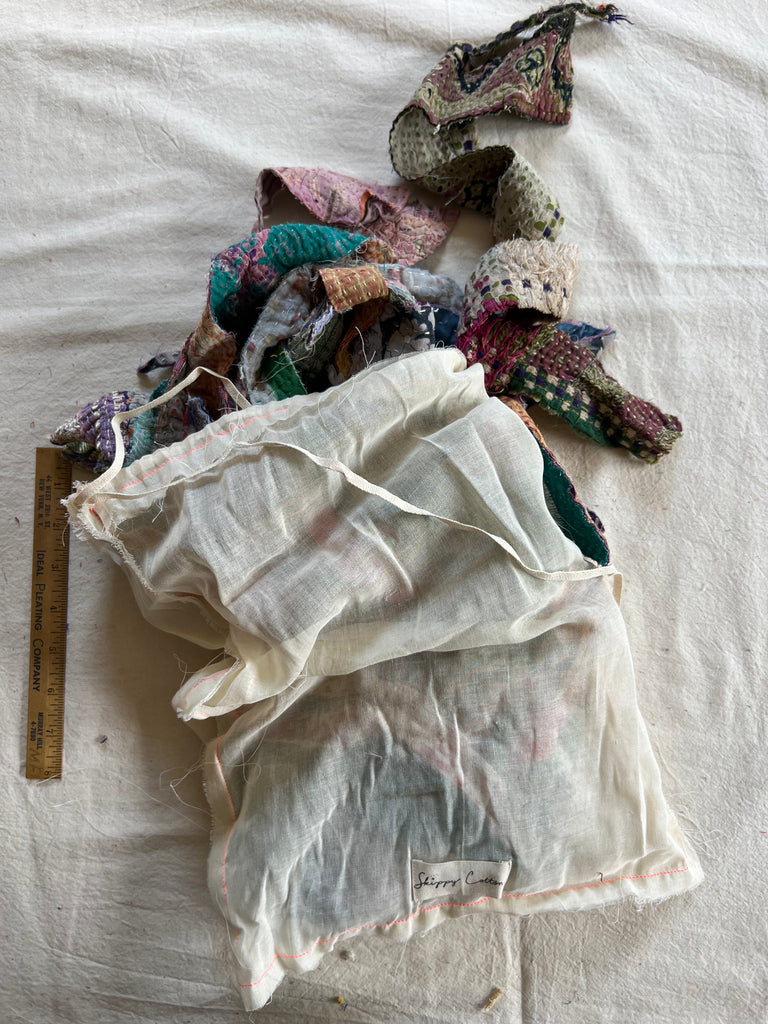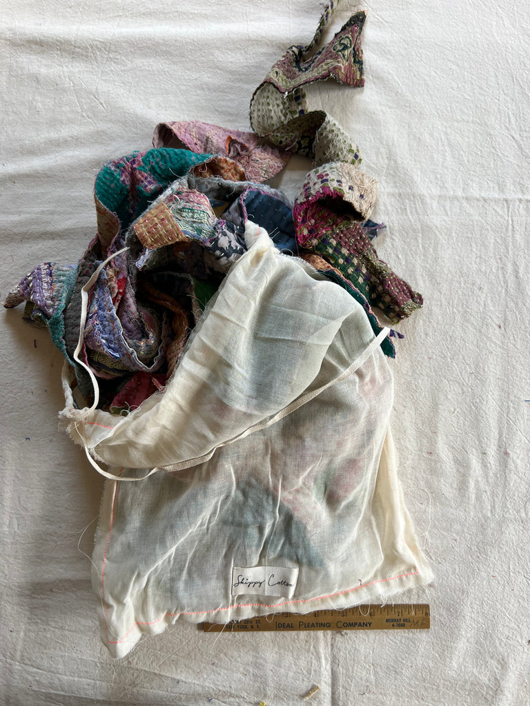 What do we do with the funny shaped offcuts and strips from our Vintage Kantha Remnant Bundles?