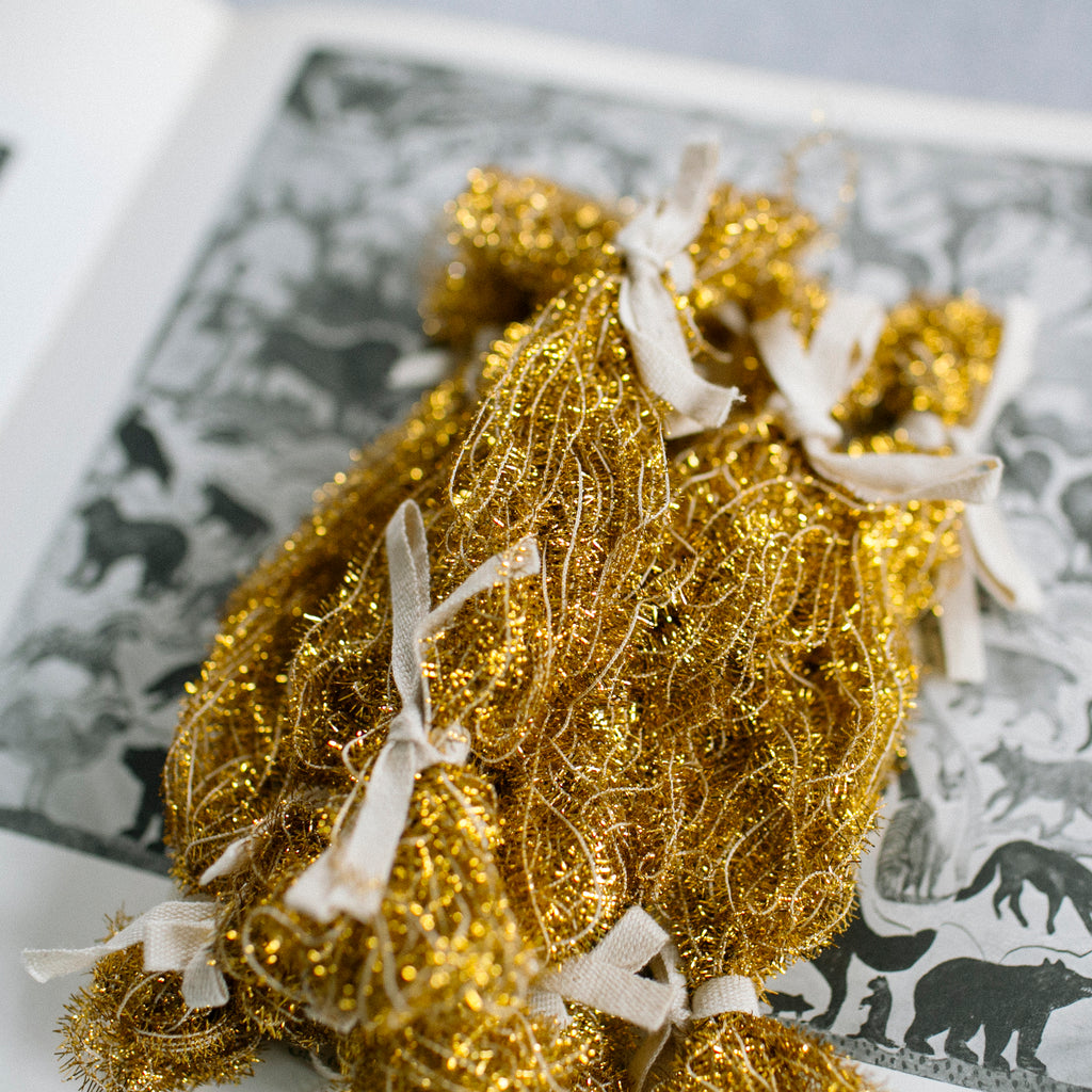 Enjoy a delightful vintage bundle of shimmering lurex ribbon, recently unearthed from one of our ribbon treasure troves in India.