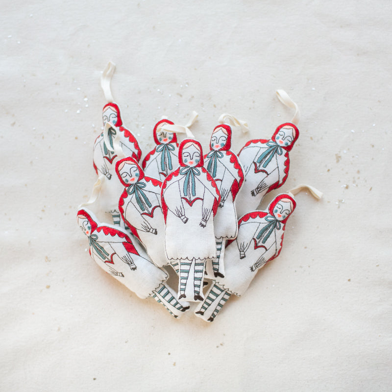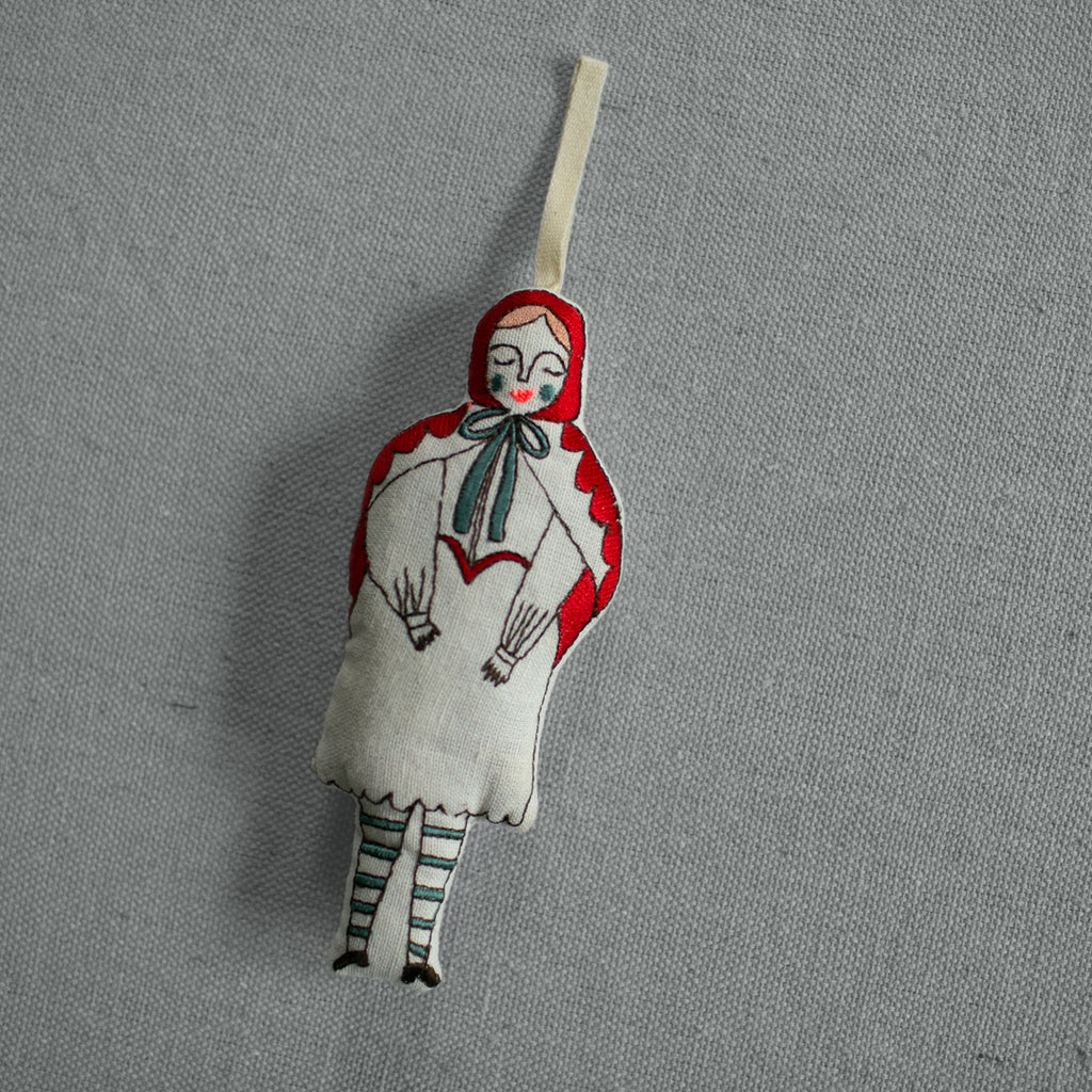 This listing is for one lavender scented Little Red ornament. Each Little Red was created from an original illustration, machine embroidered in bright red, hot pink, soft blue and flesh tone embroidery threads.