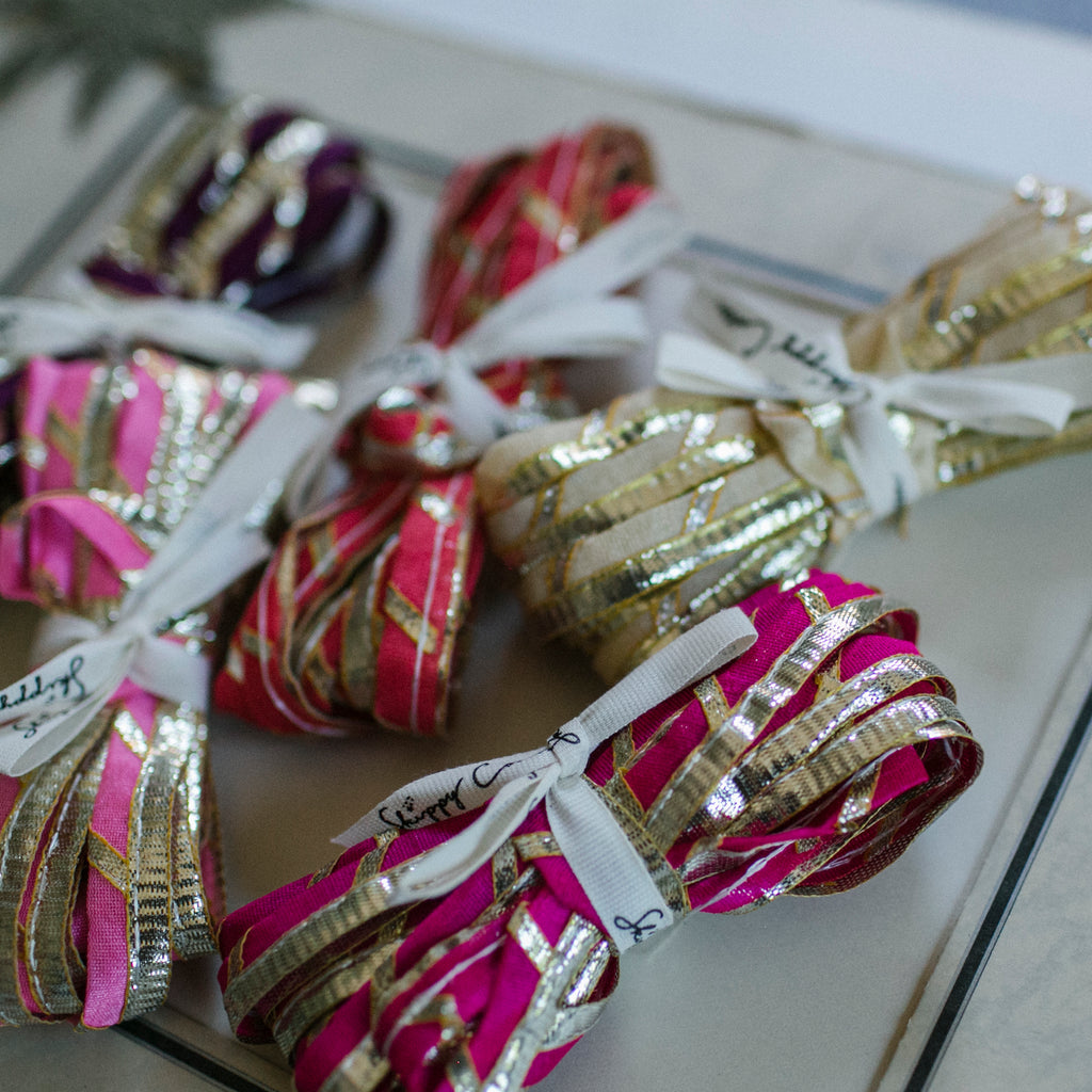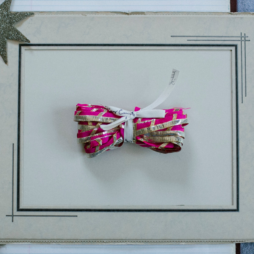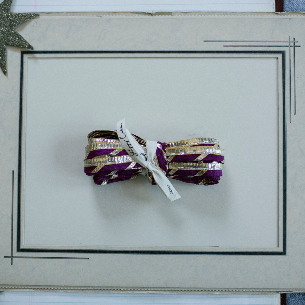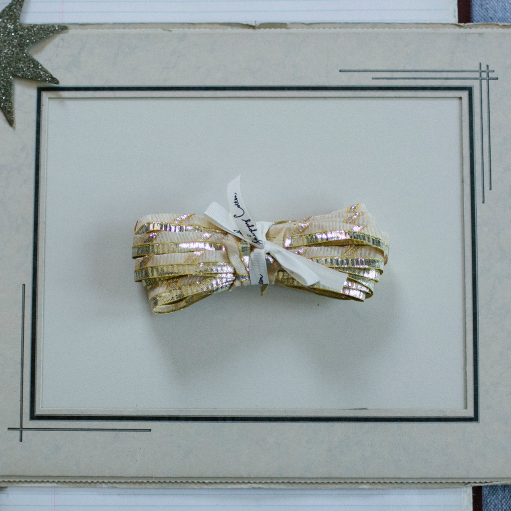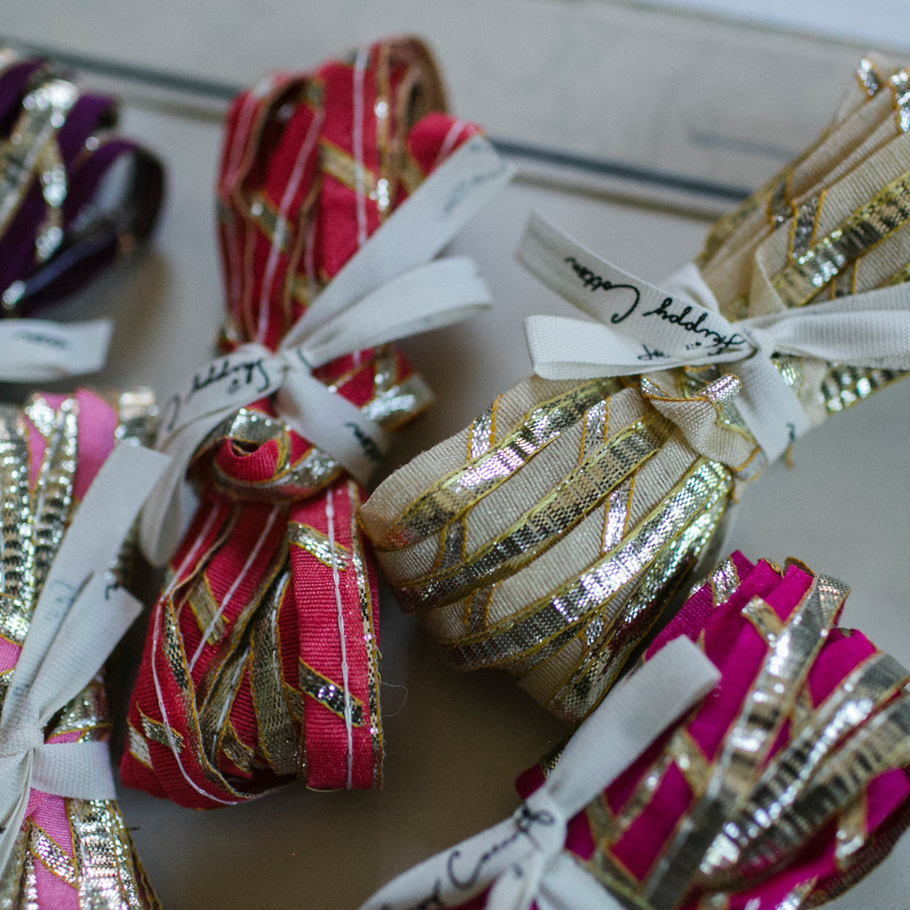 Discover a charming five-yard bundle of shimmering ribbon, freshly unpacked from our latest dive for treasure in India.