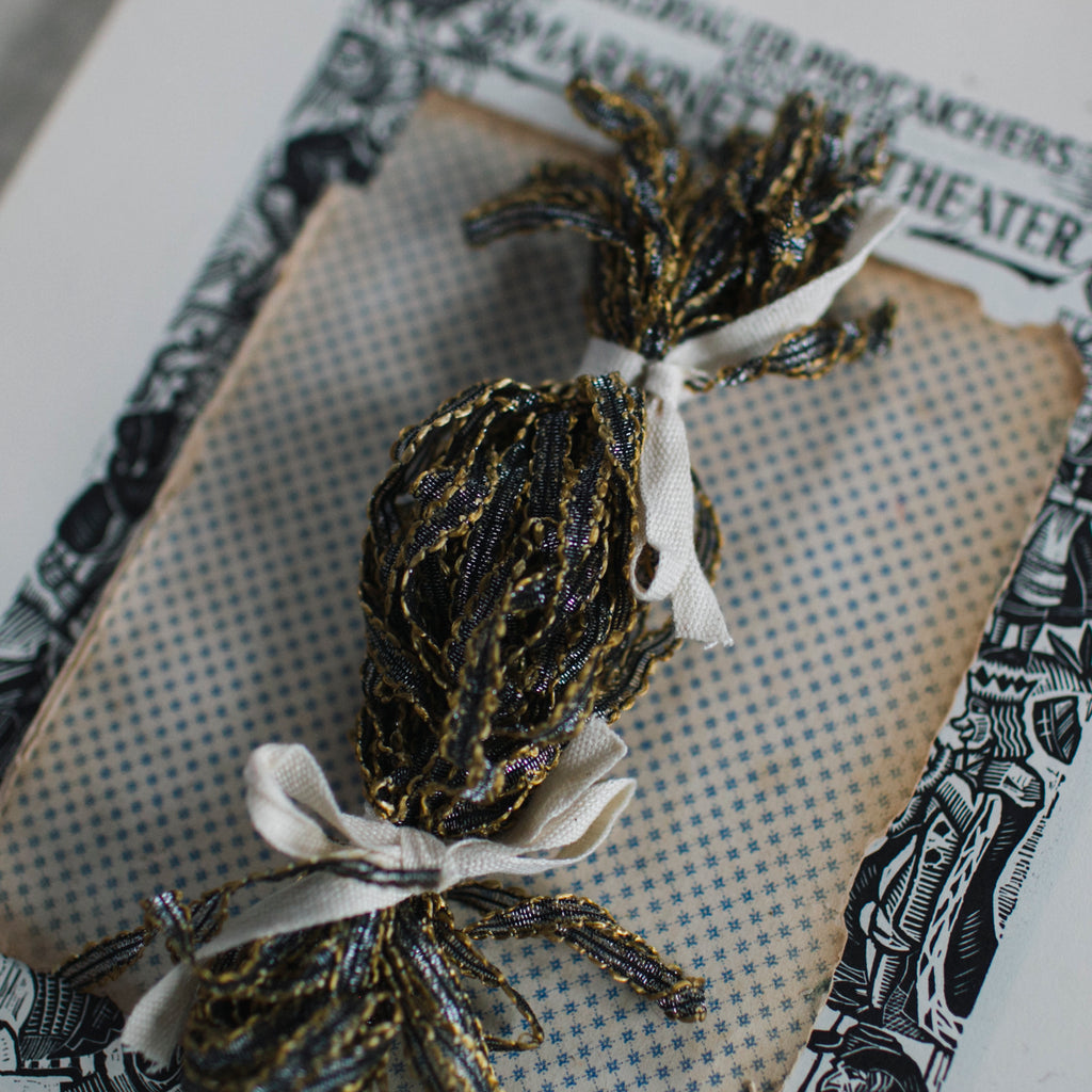 Each bundle holds approximately 4-6 yards of sparkling delight, perfect for your creative pursuits. These bundles are from old stock, showcasing charming signs of aging such as fading or tarnishing, which we believe enhances their unique appeal.