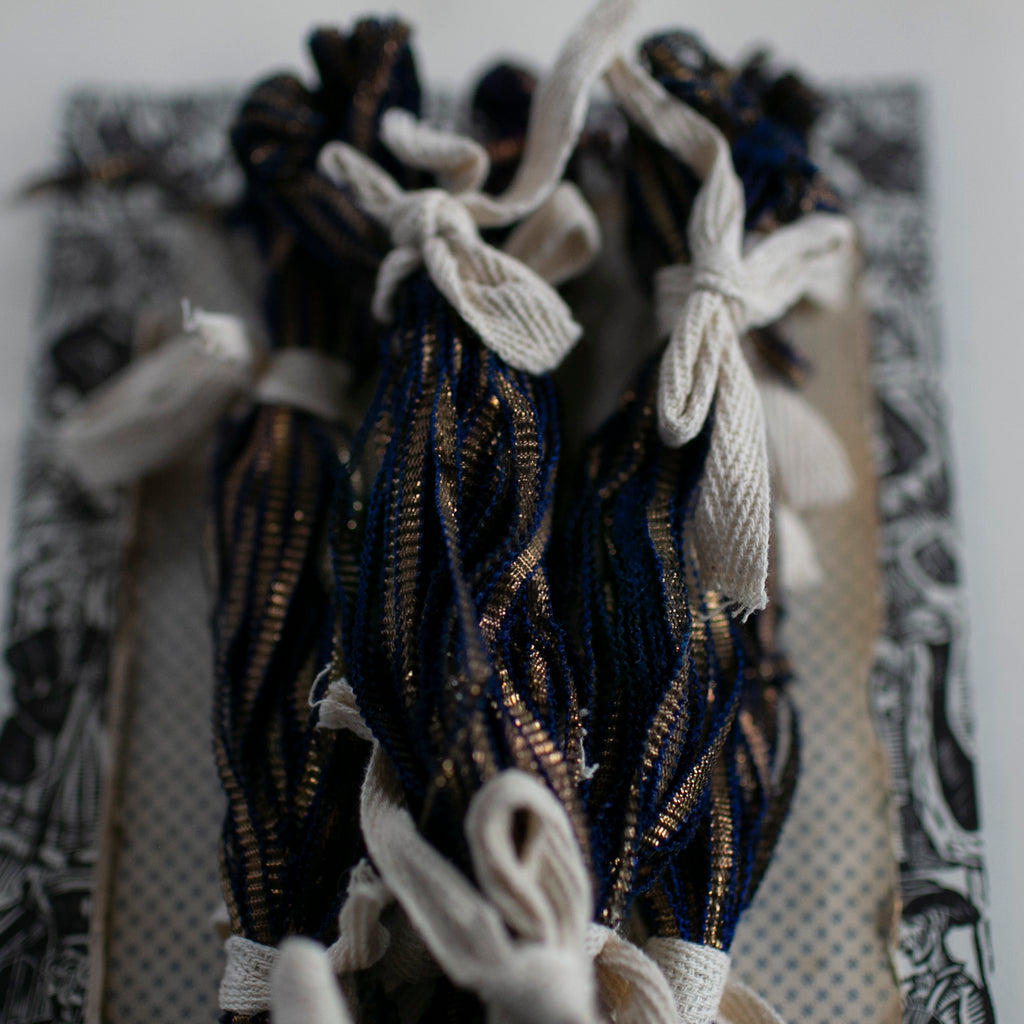 Enjoy a delightful vintage bundle of shimmering lurex ribbon, recently unearthed from one of our ribbon treasure troves in India.